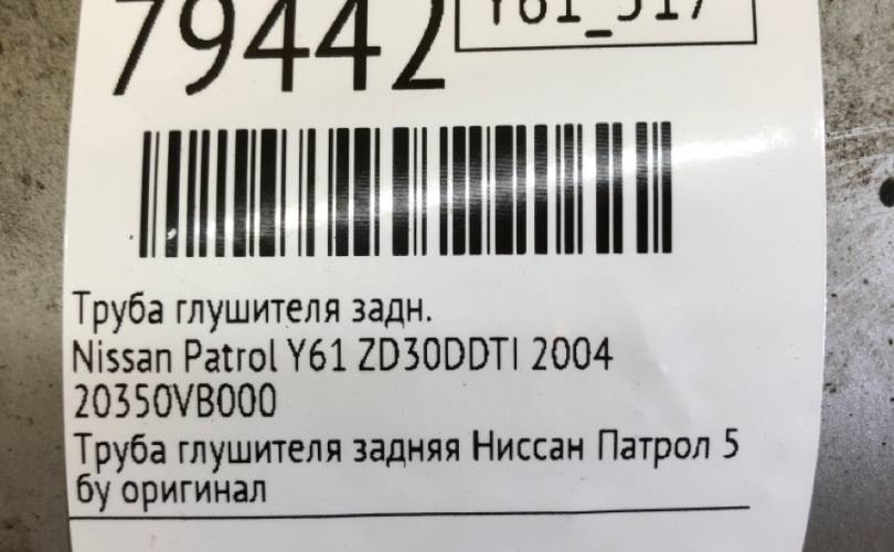 Труба глушителя Nissan Patrol 2004 20350VB000 Y61 ZD30DDTI, задняя