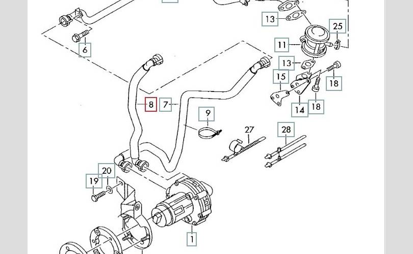 Пластиковая трубка насоса вторичного воздуха.