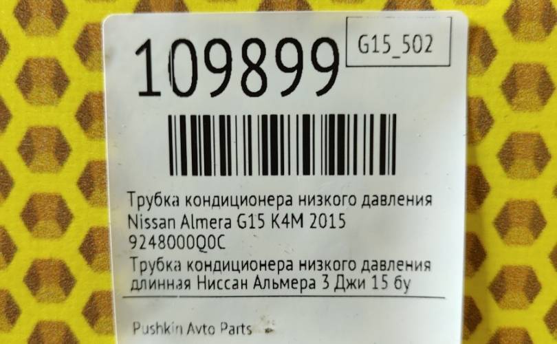 Трубка кондиционера низкого давления Nissan Almera 2015 9248000Q0C G15 K4M