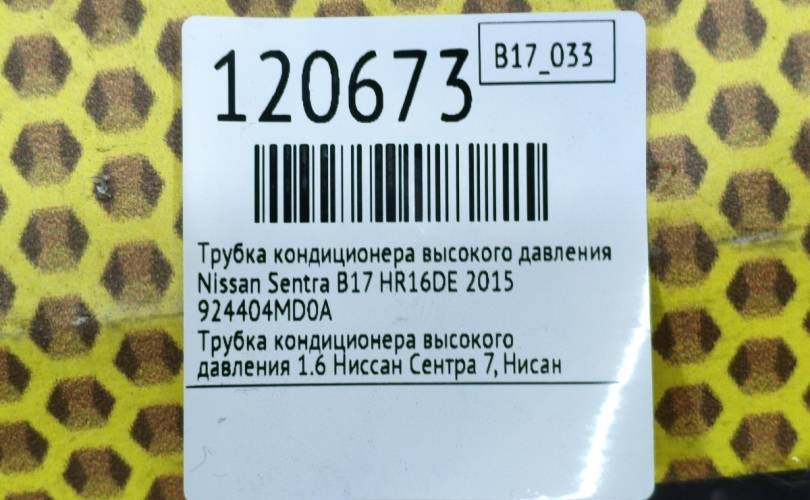 Трубка кондиционера высокого давления Nissan Sentra 2015 924404MD0A B17 HR16DE