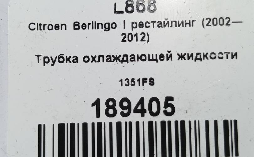 Трубка охлаждающей жидкости на Citroen Berlingo I рестайлинг (2002—2012) 1351FS
