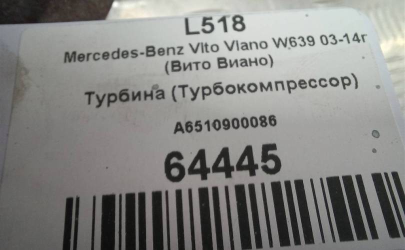 Турбина на MERCEDES-BENZ Vito W639 (2003—2010) A6510900086