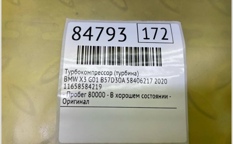 Турбокомпрессор (Турбина) BMW X3 2020 11658584219 G01 B57D30A 58406217