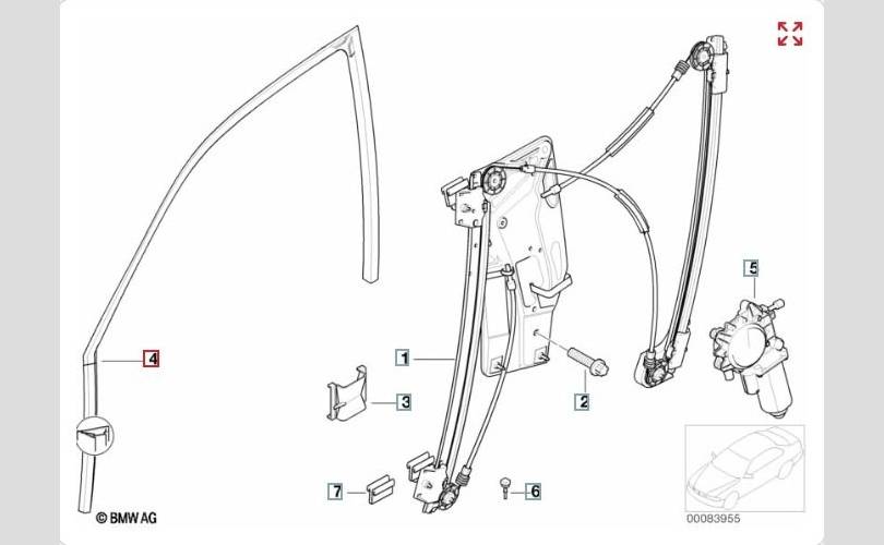 Направляющая переднего левого стекла.