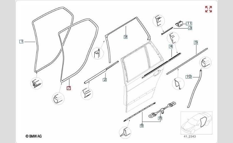 Уплотнитель двери Bmw 5-Series 2002 51229070563 E39 TOURING M57D30 306D1, задний левый