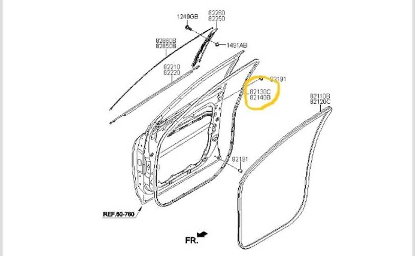 Уплотнитель двери Kia Sorento 2019 82130C5000 UM D4HB, передний левый