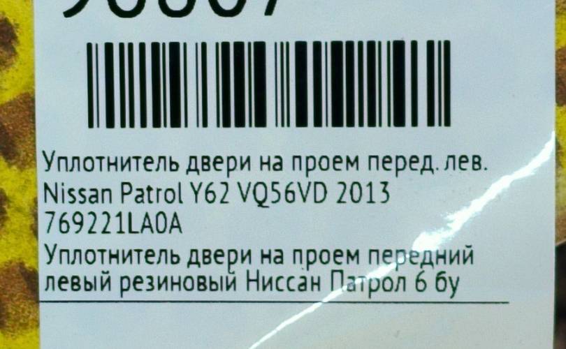 Уплотнитель на проем Nissan Patrol 2013 769221LA0A Y62 VQ56VD, передний левый