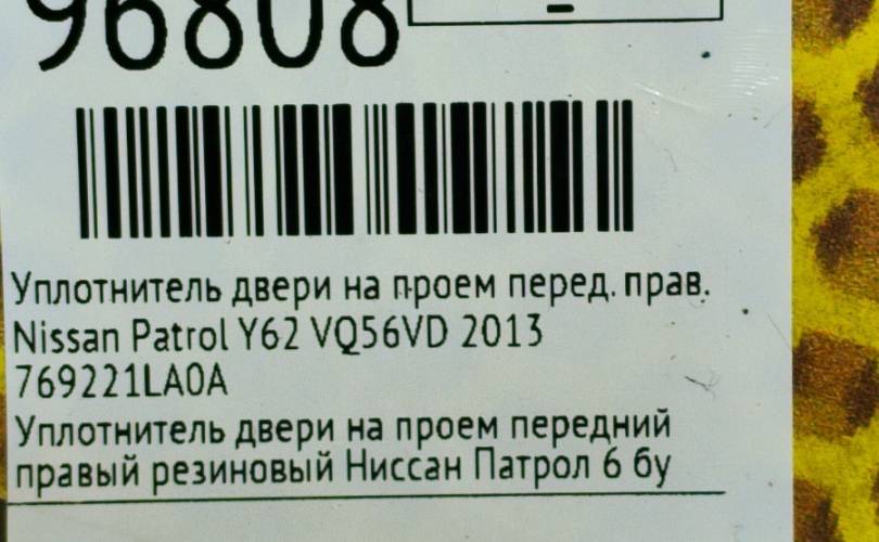 Уплотнитель на проем Nissan Patrol 2013 769221LA0A Y62 VQ56VD, передний правый