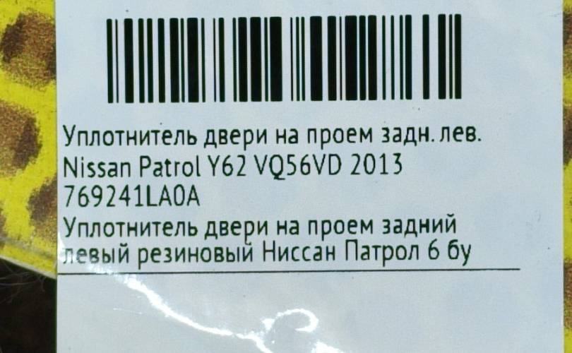 Уплотнитель двери на проем задний левый резиновый Ниссан Патрол 6 бу оригинал