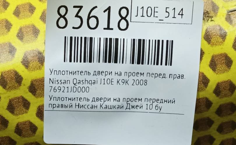 Уплотнитель на проем Nissan Qashqai 2008 76921JD000 J10E K9K, передний правый