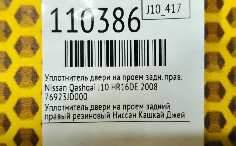Уплотнитель на проем Nissan Qashqai 2008 76923JD000 J10 HR16DE, задний правый