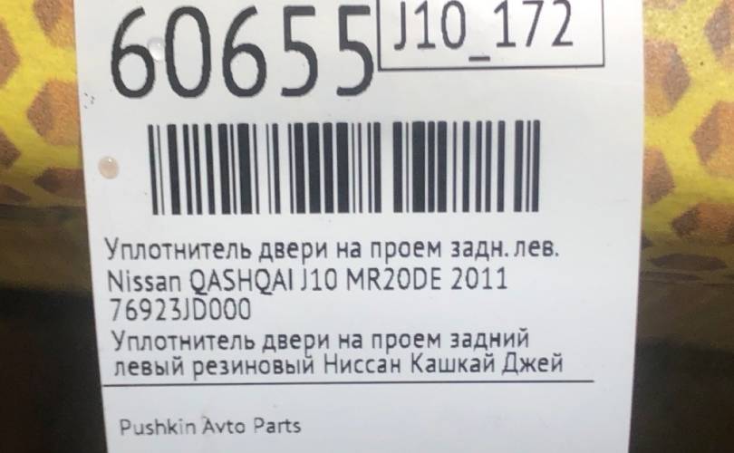 Уплотнитель на проем Nissan QASHQAI 2011 76923JD000 J10 MR20DE, задний левый