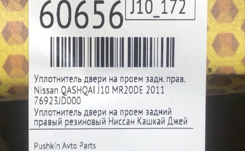 Уплотнитель на проем Nissan QASHQAI 2011 76923JD000 J10 MR20DE, задний правый