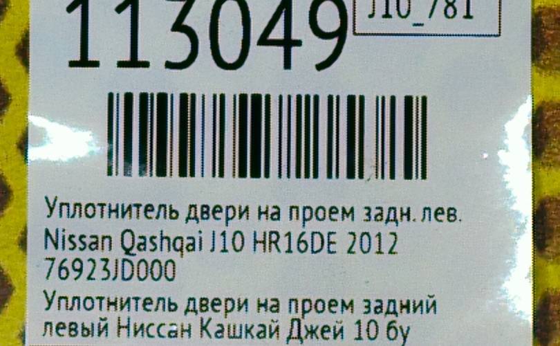 Уплотнитель на проем Nissan Qashqai 2012 76923JD000 J10 HR16DE, задний левый