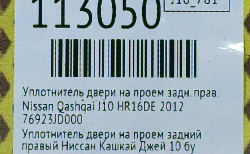 Уплотнитель на проем Nissan Qashqai 2012 76923JD000 J10 HR16DE, задний правый