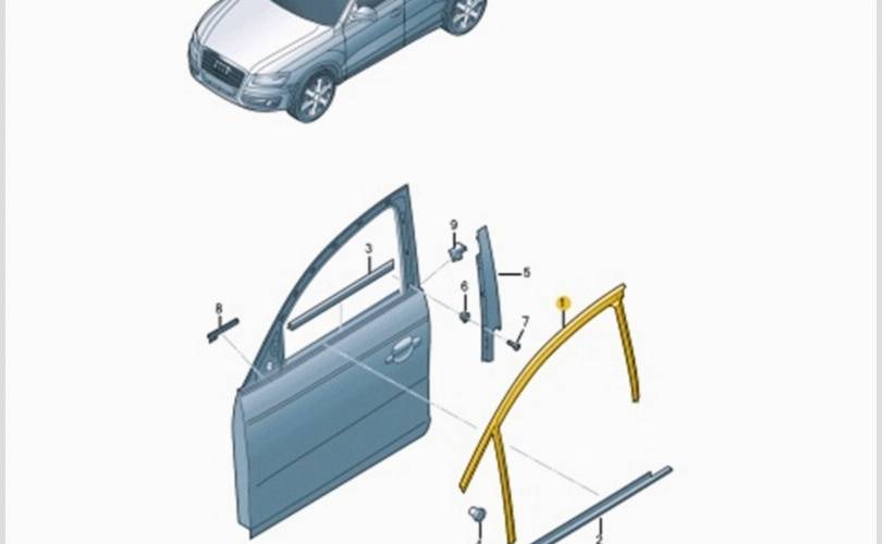 Уплотнитель опускного стекла AUDI Q5 2014 8R0837440H 8RB CMGB, передний правый