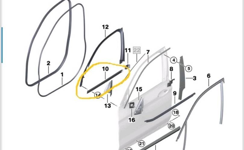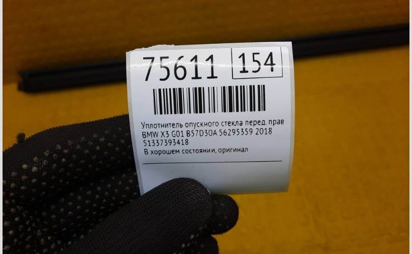 Уплотнитель опускного стекла BMW X3 2018 51337393418 G01 B57D30A 56295359, передний правый
