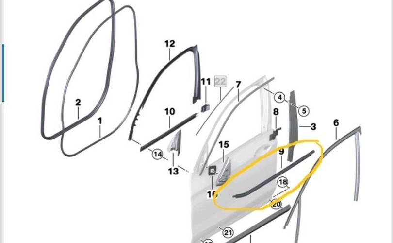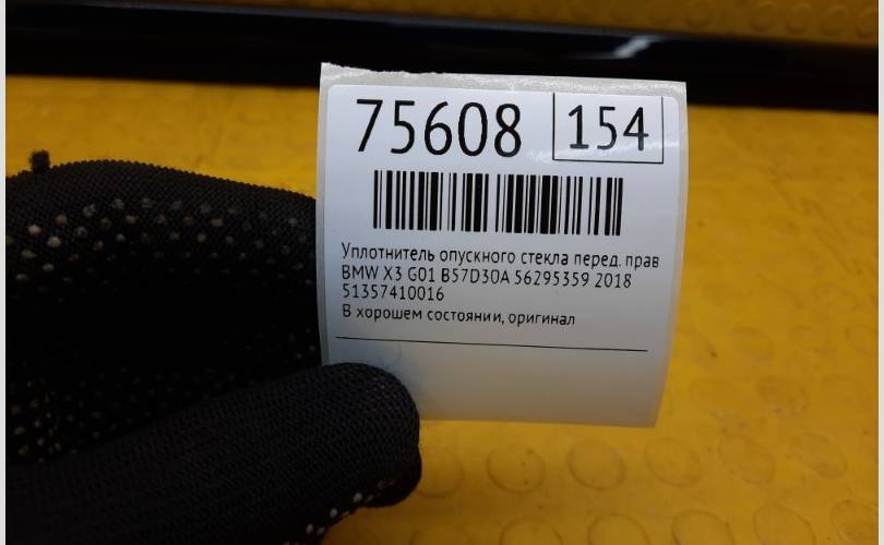 Уплотнитель опускного стекла BMW X3 2018 51357410016 G01 B57D30A 56295359, передний правый