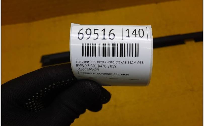 Уплотнитель опускного стекла BMW X3 2019 51357393429 G01 B47D, задний левый