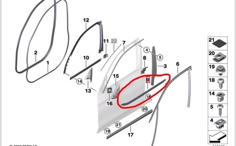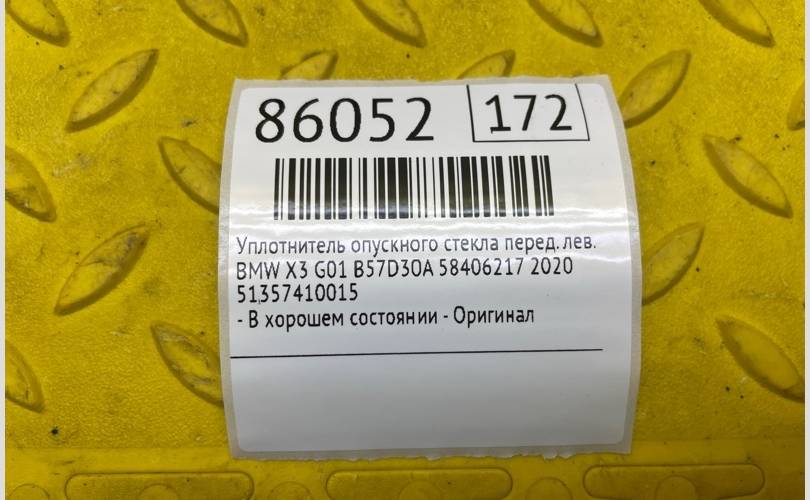 Уплотнитель опускного стекла BMW X3 2020 51357410015 G01 B57D30A 58406217, передний левый