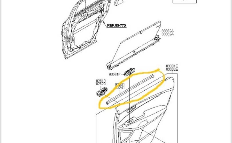 Уплотнитель опускного стекла Kia Sorento 2019 83241C5000 UM D4HB, задний правый