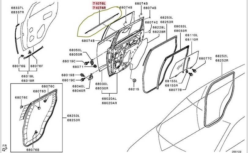 Уплотнитель опускного стекла Mitsubishi Outlander 2018 5757A292 GF0W 4B12 XP2200, задний правый