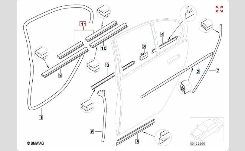Уплотнитель стекла Bmw 7-Series 2004 51427023807 E66 N62B44A, задний левый