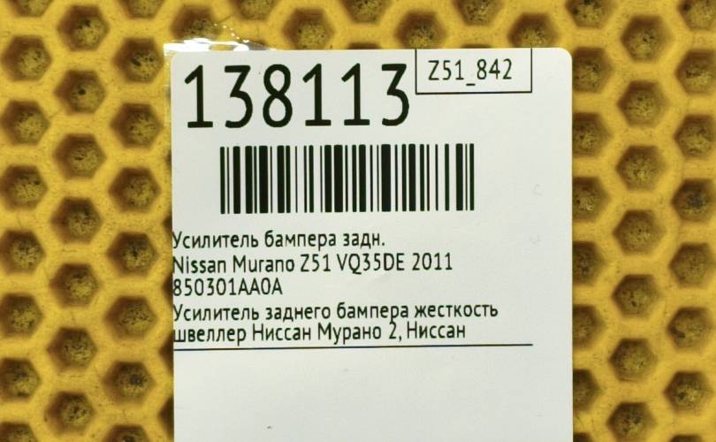 Усилитель бампера Nissan Murano 2011 850301AA0A Z51 VQ35DE, задний