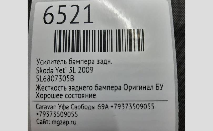 Усилитель бампера Skoda Yeti 2009 5L6807305B 5L, задний