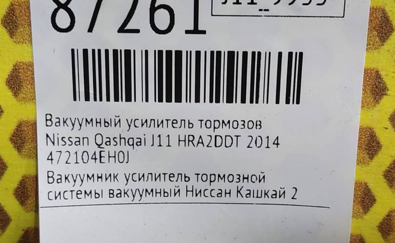 Вакуумный усилитель тормозов Nissan Qashqai 2014 472104EH0J J11 HRA2DDT