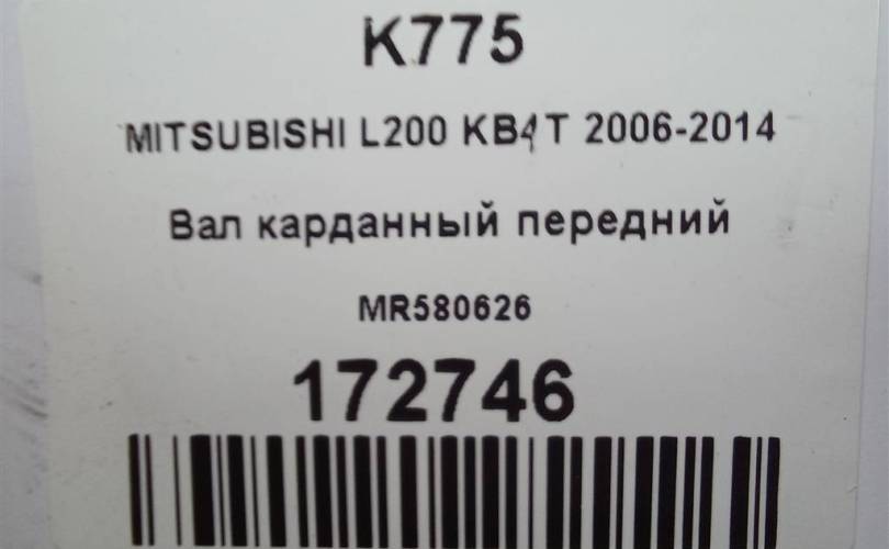 Вал карданный передний на MITSUBISHI L200 IV (2006—2014) MR580626