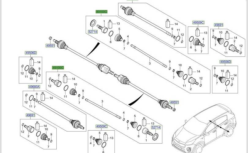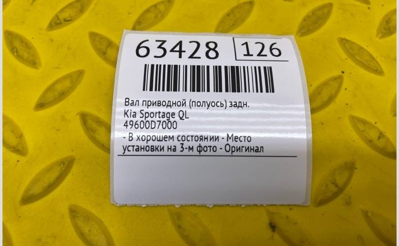 Вал приводной (Полуось) Kia Sportage 2019 49600D7000 QL G4FJJ2788593, задний