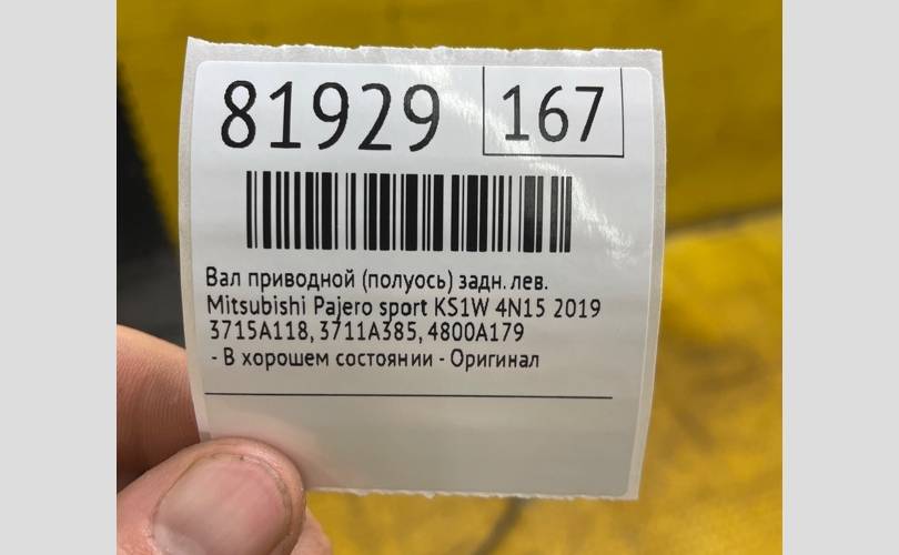 Вал приводной (Полуось) Mitsubishi Pajero sport 2019 3715A118 KS1W 4N15, задний левый