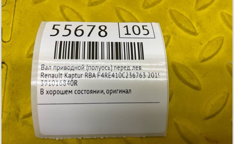Вал приводной (Полуось) Renault Kaptur 2019 391016840R RBA F4RE410C236763, передний левый