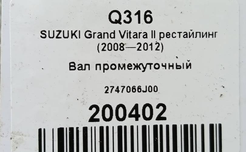 Вал промежуточный на SUZUKI Grand Vitara II рестайлинг (2008—2012) 2747066J00
