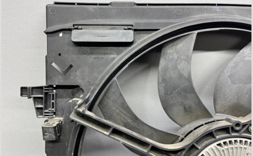 Диффузор с вентилятором BMW X5 E70 ,X6 E71 дорестайлинг 3.0 N52B30 ( БМВ Х5 Е70 ,X5 E71) . Дефект ; Сломано крепление фишки .