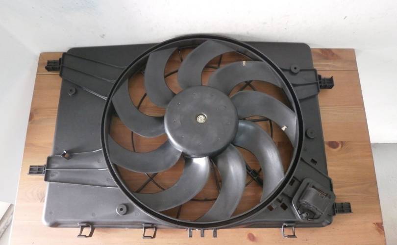 Вентилятор охлаждения (основной) двигателя (ДВС) в сборе с диффузором, новый, неоригинальный. Подходит для автомобилей Opel Astra J (Астра Джей) с 2009 по 2016 г. с механической коробкой переключения передач.