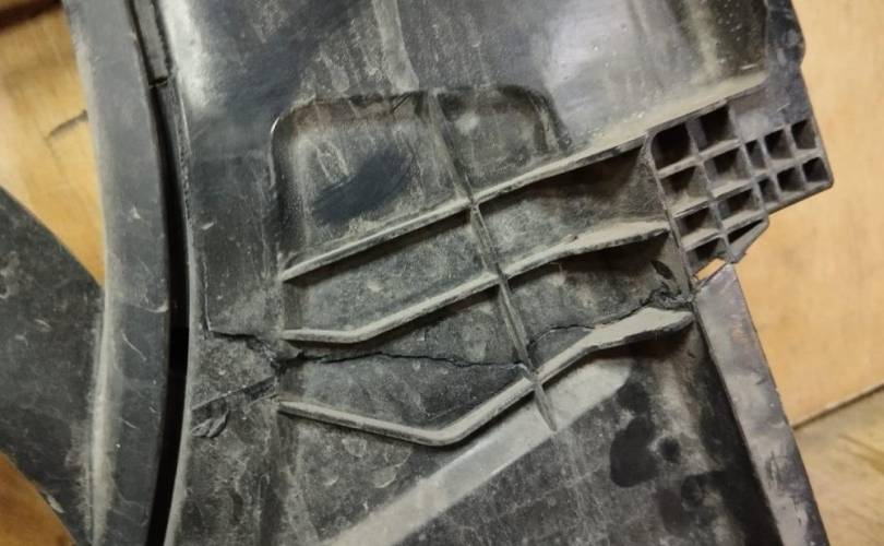 Geely Monjaro. Вентилятор охлаждения радиатора. Дефект диффузора. (не большая трещина). Не влияет на функцию.