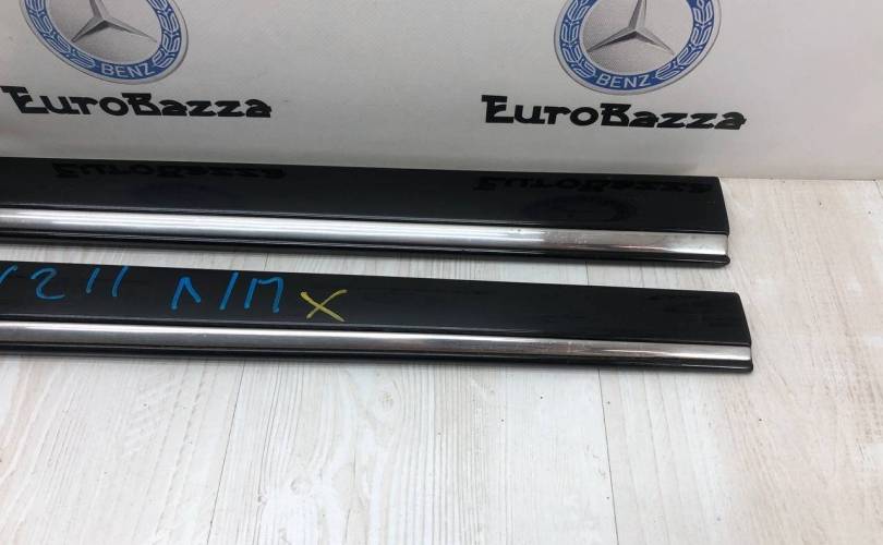 Дверные накладки внешние передние обшивка облицовка дверные накладки двери внешние левый правый передний задний левой правой хромированной полоской по середине спереди сзади слева справа с клипсами Mercedes 211 Мерседес