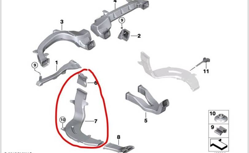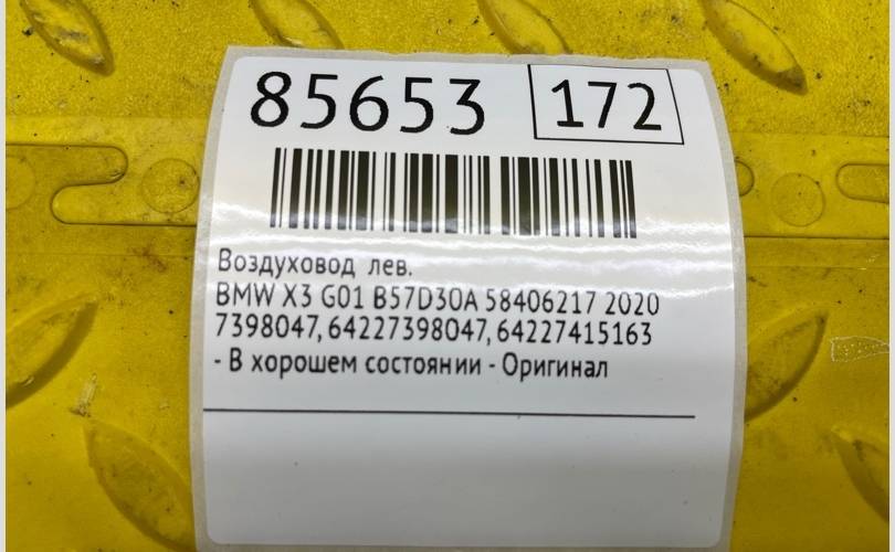 Воздуховод BMW X3 2020 64227398047 G01 B57D30A 58406217, левый