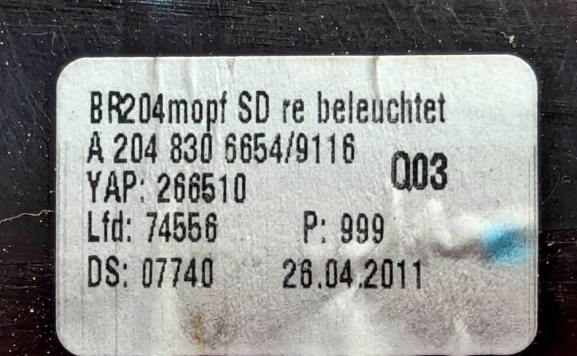 Номер по складу:293671 Рестайлинг. Правый, черный ( 9116 ), в торпедо. W204.