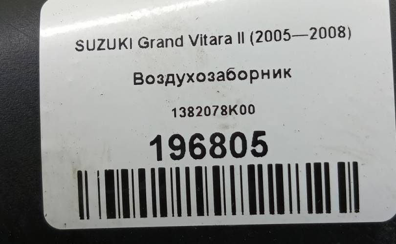Воздухозаборник на SUZUKI Grand Vitara II (2005—2008) 1382078K00