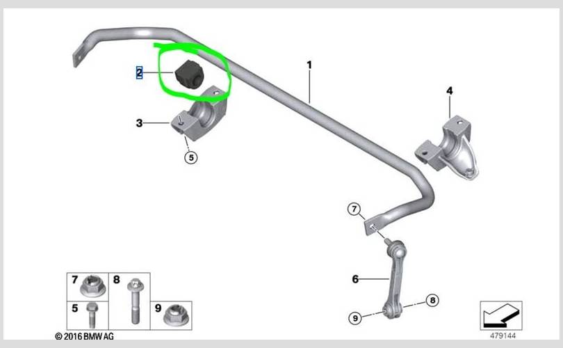 Втулка стабилизатора BMW 7-series 2017 33506861465 G12 B57D30B, задняя