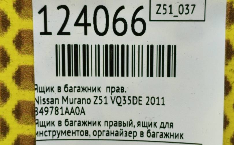 Ящик в багажник Nissan Murano 2011 849781AA0A Z51 VQ35DE, правый