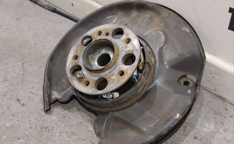 Задняя правая ступица цапфа подшипник фланец заднего моста с кожухом и тросом ручника сзади справа Mercedes W170 SLK Мерседес Roadster Cabriolet Родстер Кабриолет