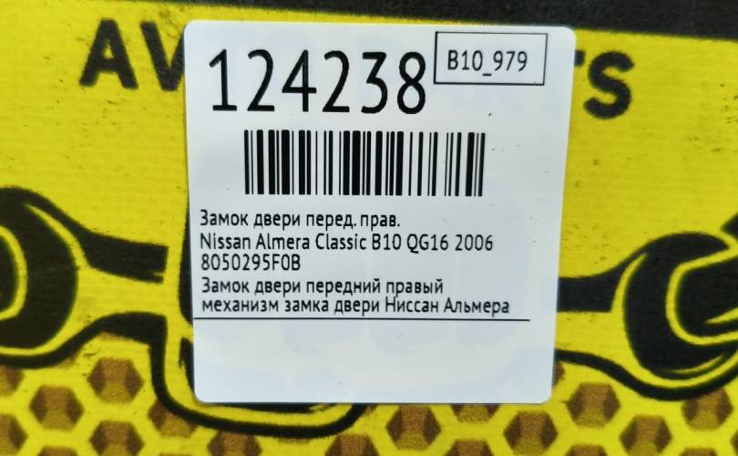 Замок двери Nissan Almera Classic 2006 8050295F0B B10 QG16, передний правый