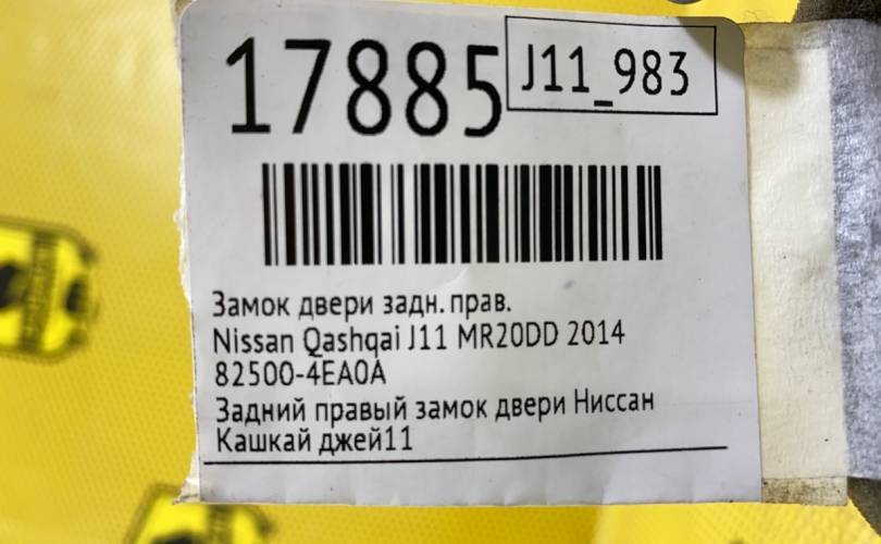Замок двери Nissan Qashqai 2014 825004EA0A J11 MR20DD, задний правый