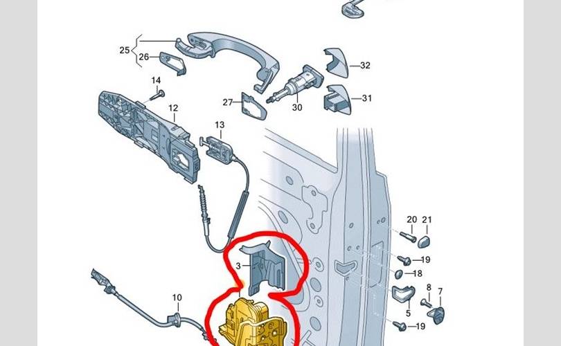 Замок двери Volkswagen Touareg 2019 761837016A CR7 CVMD, передний правый