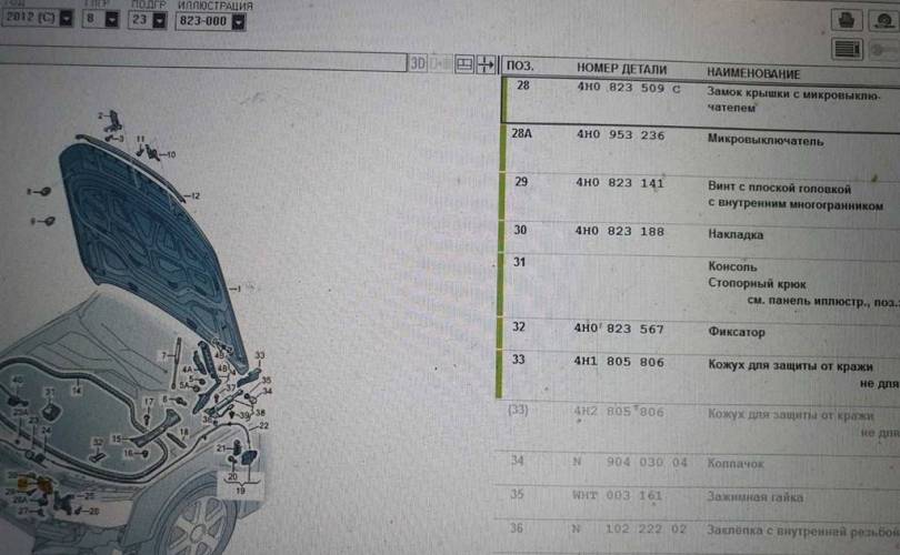 Замок капота Audi A8 D4 (2010—2014) 4,2