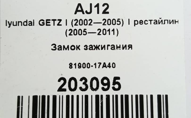 Замок зажигания на Hyundai GETZ I (2002—2005) I рестайлинг (2005—2011) 81900-17A40